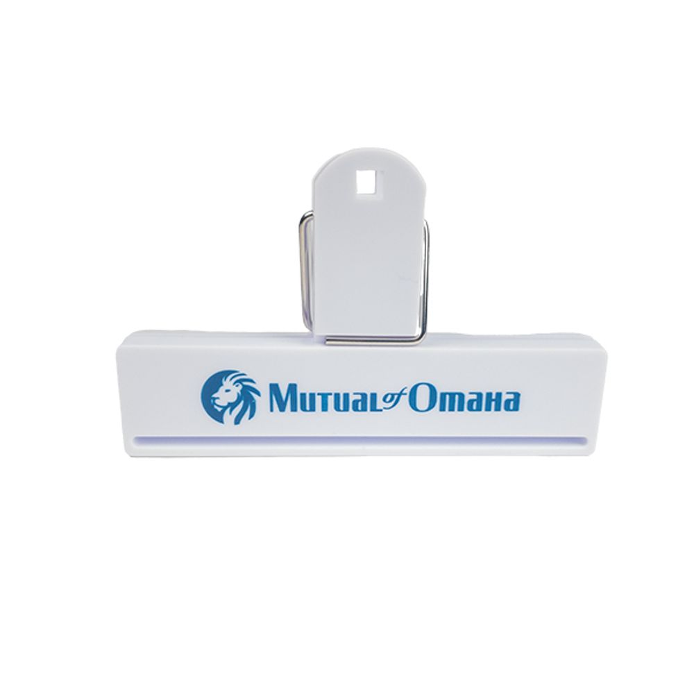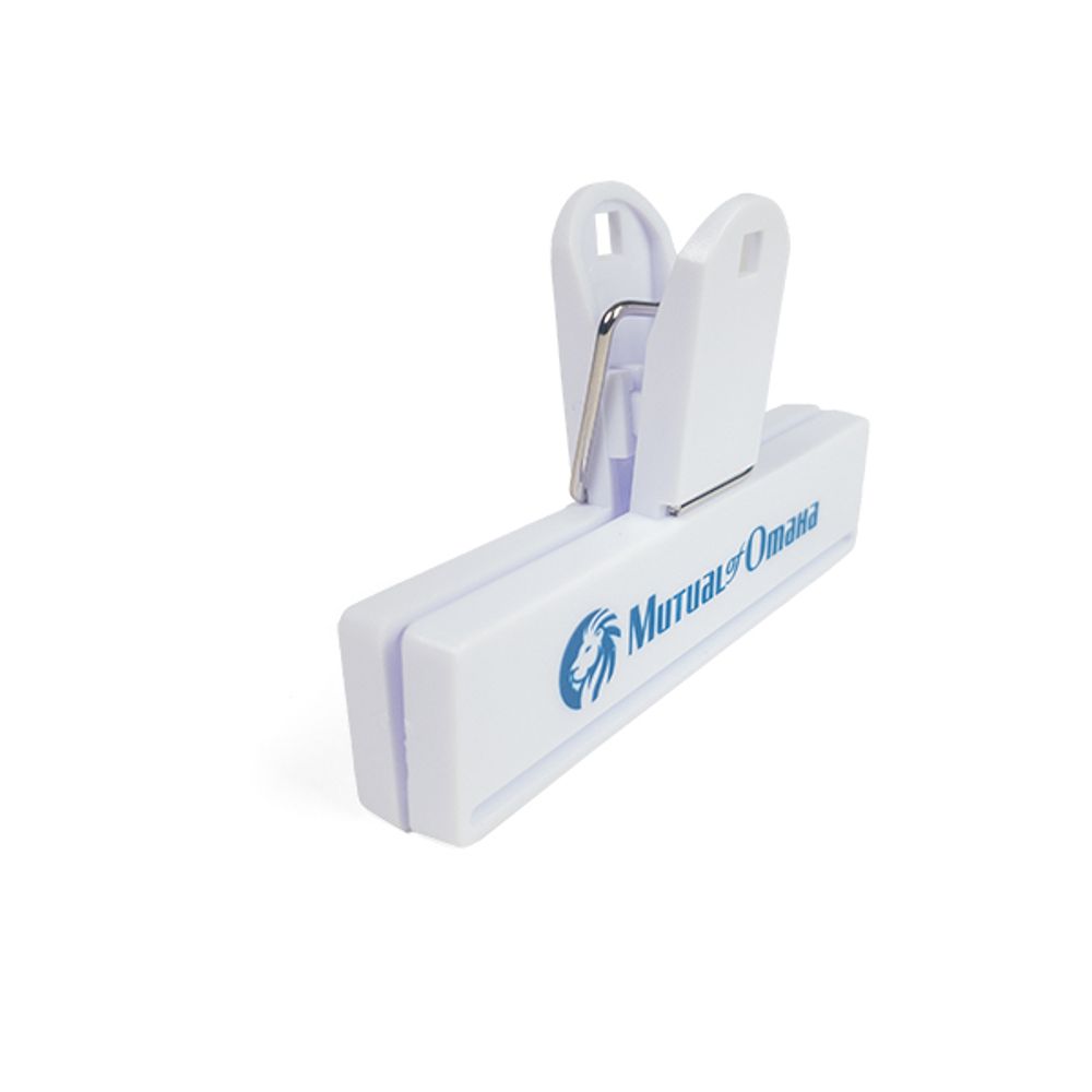 sku: MCSPR-121-MutualTranslucent blue all purpose clip with horizontal logo
