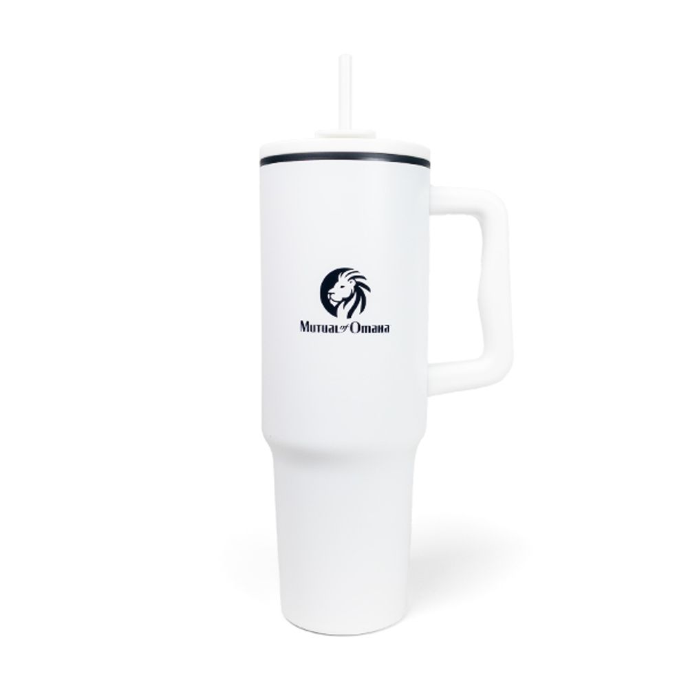 sku: MCSPR-34640 oz. Stainless Steel Tumbler with Plastic Liner and Straw– a versatile option for both hot and cold drinks. The outer body is crafted from 201 stainless steel, while the inner body, lid, and straw are made of PP. With a double walled vacuum insulation making it suitable for hot and cold drinks, and a capacity of 40oz. Measuring 10.51" x 2.95" with a narrow base that make it fit seamlessly into any car cup holder. This tumbler features an ergonomic handle for easy carrying, and a matte finish from spray painting.